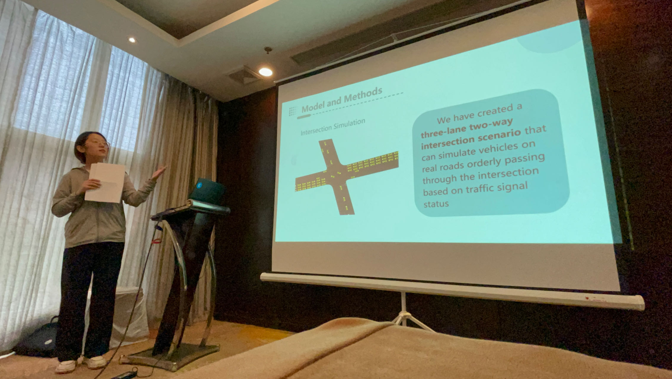 该论文由柴任浩同学为第一作者,侯依琳和付彬艳同学为第二、第三作者,并在导师何宇矗博士的指导下完成,论文基于SUMO交通仿真平台,针对城市交通系统中的平面交叉口、快速路上下匝道以及环岛等典型拥堵路段建立了仿真模型,使用交通流跟驰模型实现了车流仿真,能够真实再现城市道路环境中的自由流、同步流和拥堵流,为进一步使用强化学习算法缓解交通拥堵奠定了基础。经过师生的共同努力,该论文成功被ICICSP接收,并被EI核心检索收录。