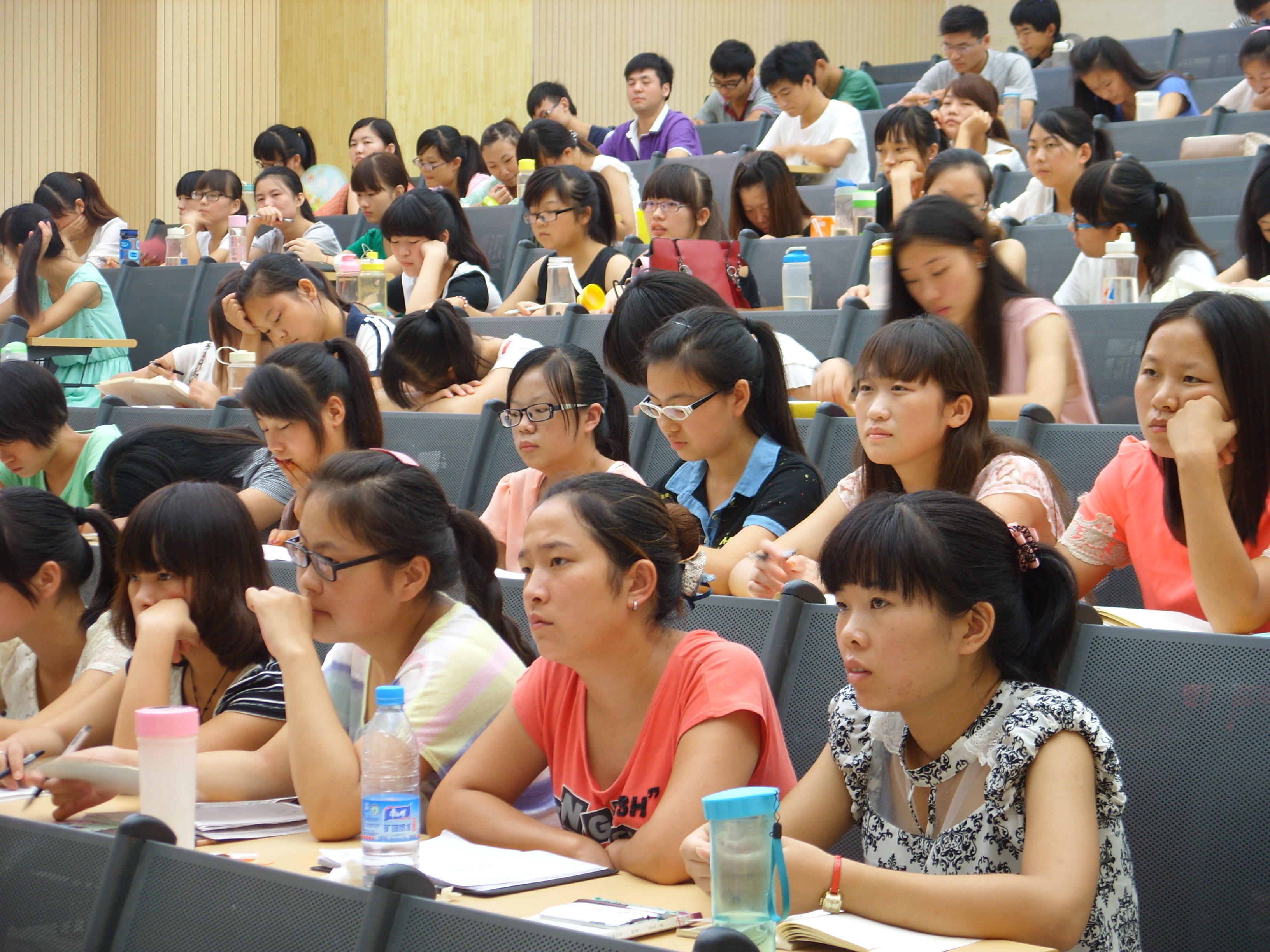 张贵民立足扎实的课堂教学经验,以当今小学写作教学中存在的“三无三假”问题为出发点,重点分析了教师教学思维中存在的误区,并总结出五点建设性应对方法;蔡明围绕“三维目标的厘定与教学方法的选用”展开论述,阐述了“三维目标”(知识与能力、过程与方法、情感态度与价值观)之间的辩证统一关系。两场内容颇具前瞻性、开放性的讲座,为即将上岗的实习教师开阔了理论视野。