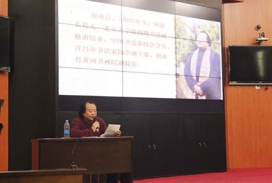 2018年4月26日下午两点半,在东校区文质楼A105由科研处主办美术学院承办的“书法的临贴与创作”名家讲堂活动。活动邀请中国书法家协会会员、河南省黄河书画院副院长、许昌市书协副主席刘迎春为主讲教授。