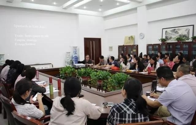 2017年5月12日上午,外国语学院有幸邀请到西班牙Manel Ollé i Rodríguez欧阳安教授来我院做文化交流专题讲座。出席本次讲座的有外国语学院院长马莉,外国语学院全体教师和2016级学生代表。