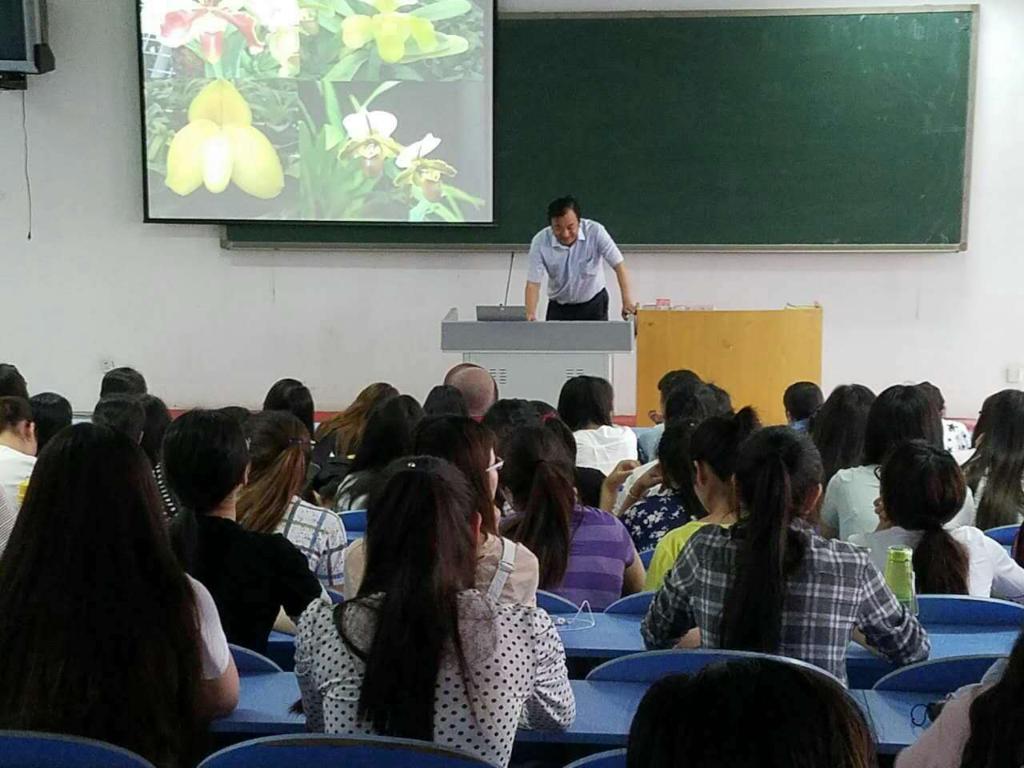 报告前,崔教授首先对我校生物工程研究所作了简单的介绍。报告中,崔教授由浅入深,从兰花的基本知识入手,分别向同学们介绍了兰花的种苗生产技术、蝴蝶兰的分子育种、兰花工程技术研究中心研究项目及内容以及石斛复合多糖胶囊及制备方法。