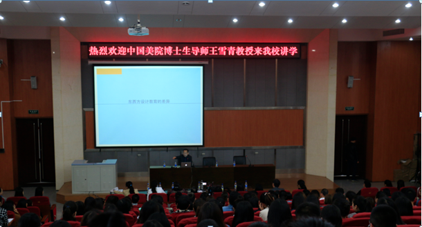2016年4月12日上午9:00,在郑州师范学院东校区综合楼A301举行了设计类讲座,此次讲座我校邀请了来自中国美术学院博士生导师王雪青教授。校党委书记于向英,美术学院院长王西军,美术学院团总支书记王滢老师及美术学院学生均出席了这次讲座。