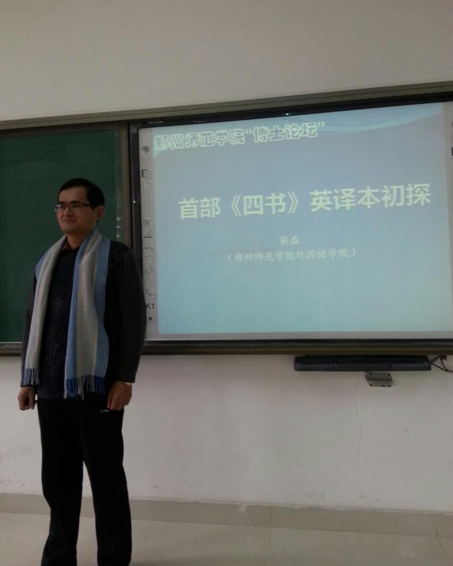 随着中国经济实力的增强,中国文化走出去显得格外重要。外国语学院不仅承担着把世界介绍给中国的任务,也应担负起把中国介绍给世界的使命。为了使同学们了解国外中国学的研究现状,外国语学院郭磊博士于2015年12月8日下午16:00-18:00在综合楼A104教室为B15英语专业举行了《首部“四书”英译本初探》的专题讲座。