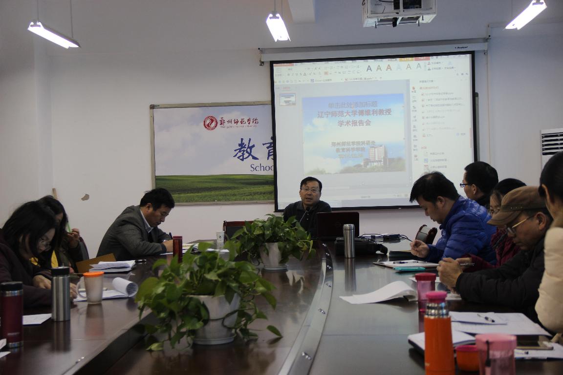 2015年12月29日上午9点,在特教楼508教室,辽宁师范大学教育学院院长、博士生导师傅维利教授应邀为我校教师做了一场名为“教师专业发展的理论与实践”的专题讲座。副校长王北生、教育科学学院院长陈国维以及教育科学学院、特殊教育学院和初等教育学院的部分老师一同聆听了傅教授的讲座。