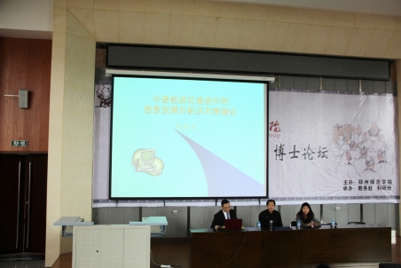4月17日,“三区 四化 郑州的机遇与发展”高端论坛在我校公共教学楼A301进行。原河南财经政法大学副校长李鸿昌教授、郑州大学商学院院长高友才教授、郑州大学保险系主任李琴英教授、郑州商品期货交易所经理田鑫博士出席论坛。