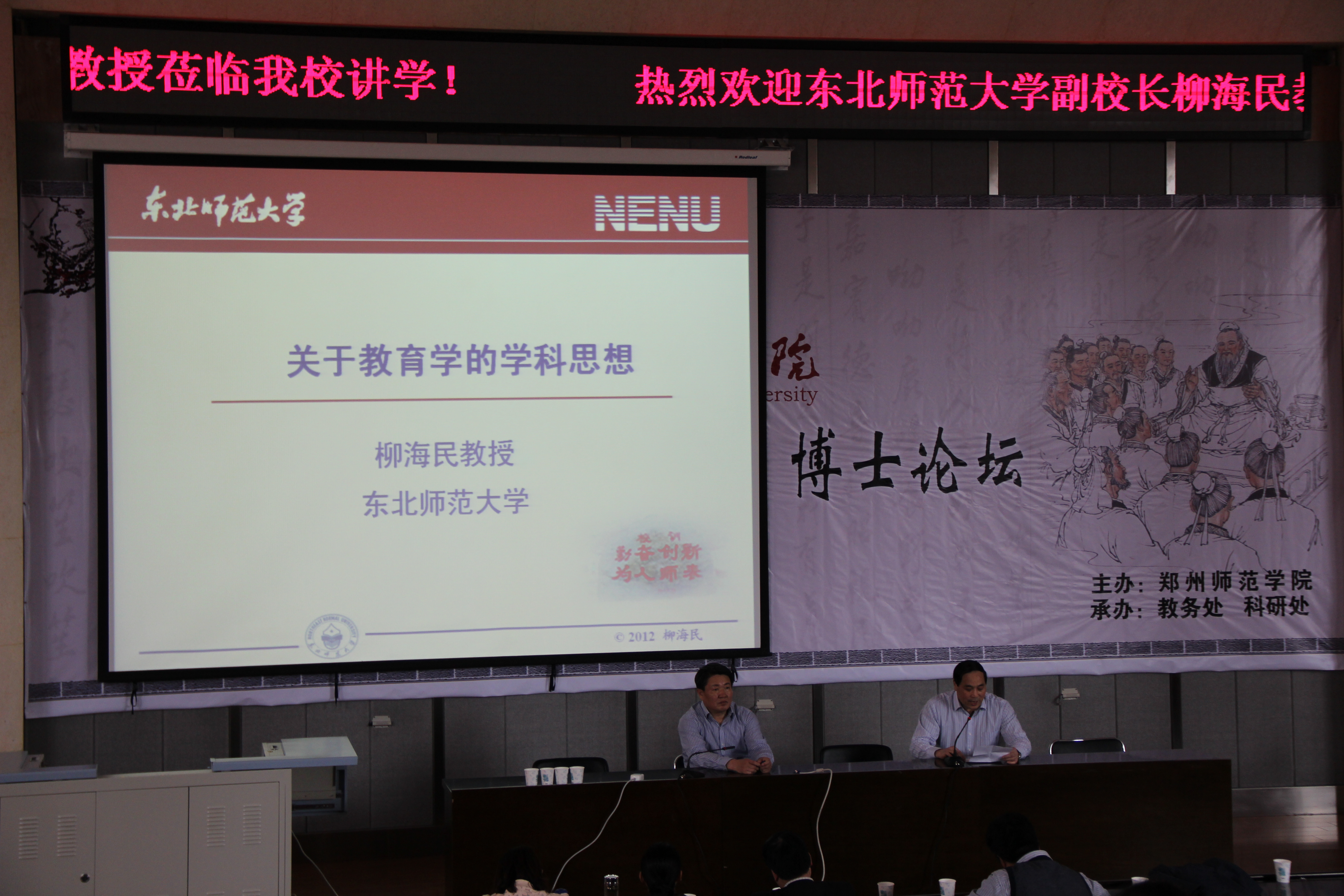 2013年4月15日下午3点,东北师范大学副校长、博士生导师柳海民教授应邀在我校综合教学楼A301学术报告厅作了题为《关于教育学的学科思想》的专题讲座。校领导、教育科学学院领导及相关专业师生到场聆听了讲座。