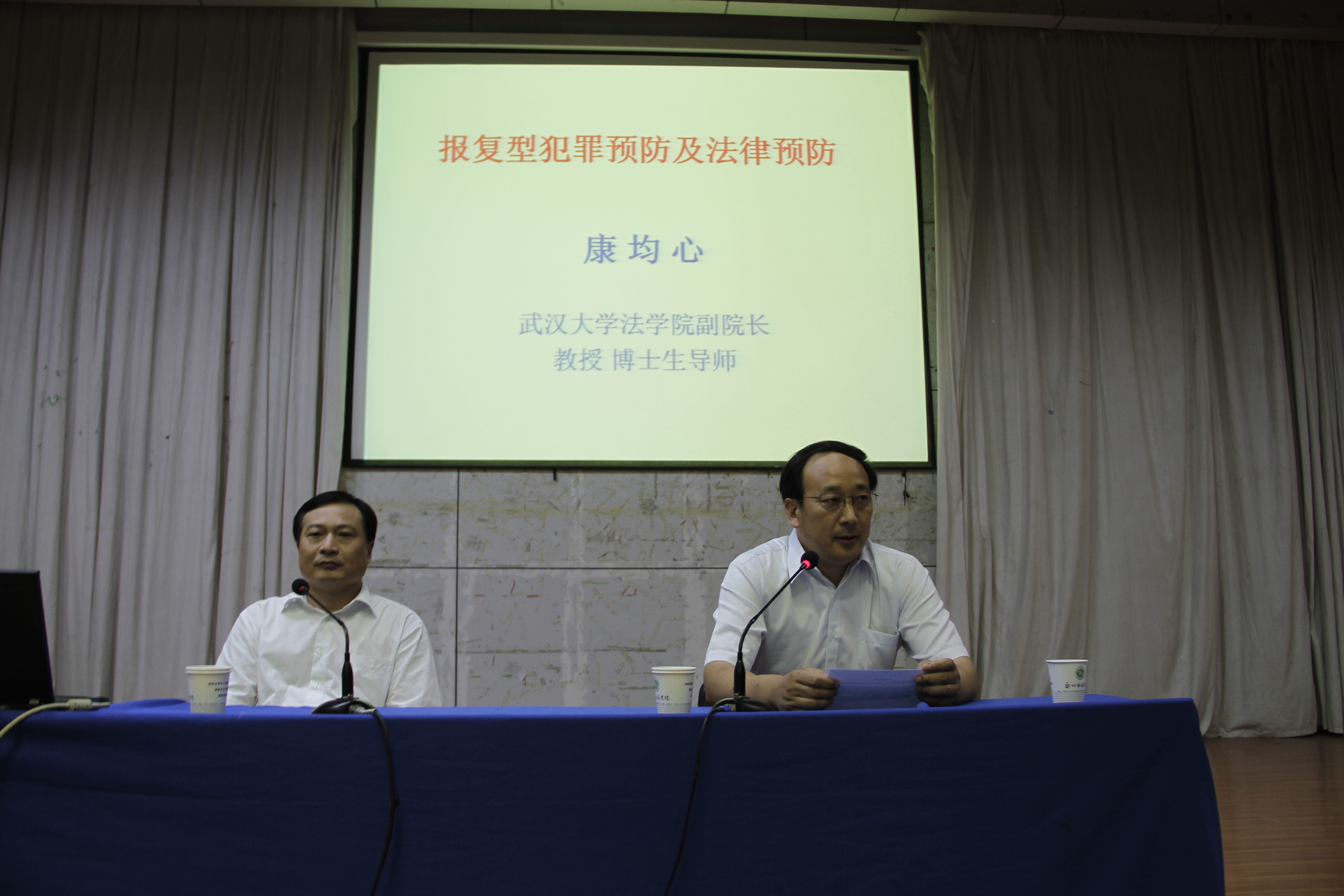 9月25日下午,武汉大学法学院副院长、法学博士、教授、博士生导师、中国犯罪学会副会长康均心在7号楼报告厅做《报复型犯罪的预防与法律防控》的学术报告。科研处处长王永恒主持报告会,近600名师生参加。
